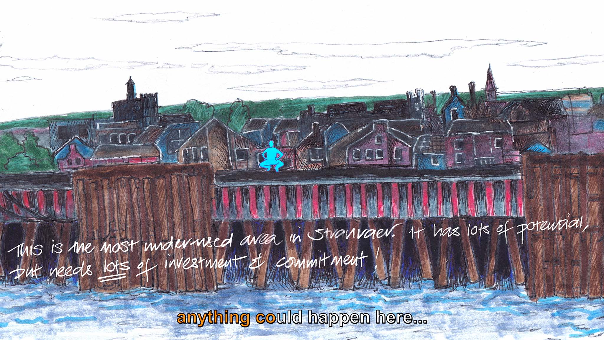 Stranraer has seen a lot of decline in recent decades and the Stranraer Millenium Centre’s project WHAT WE DO NOW invited local people to respond to the state of the town and imagine: what could happen here? Hope London and Rory Laycock created the Stranraer Colouring Book, which was used to capture responses from young people and older, and Dean Cargill produced Hope London's song What Could Happen Here?, featuring audio interviews with local people.