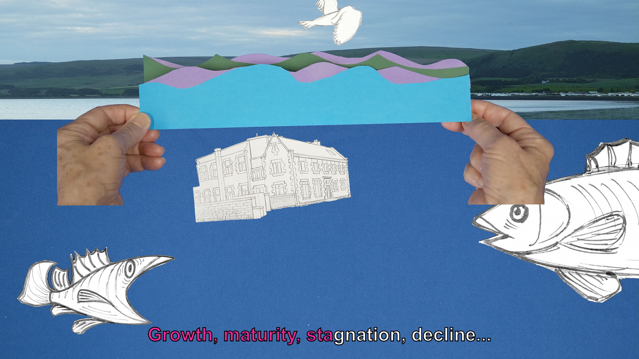 Hope approached me to collaborate on a music video for the song as part of the project, drawing form the colouring and written materials generated during the workshops that Hope led throughout the project, using templates she had illustrated with graphic designer Rory Laycock. The film prominently features the derelict George Hotel, a stark symbol of the town’s neglect, located right at its heart.